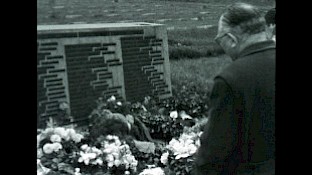 Reisegruppe liest Namen auf Massengrab aus dem 2. Weltkrieg