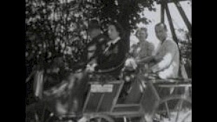 ein weiteres Paar sitzt bereits in der Kutsche, der Kutscher steht daneben,