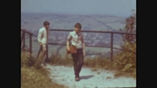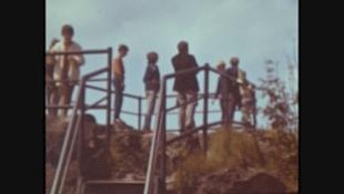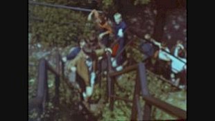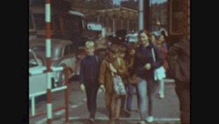 Kinder überqueren zu Fuß offenbar eine Grenze (CSSR / Tschechien?)
