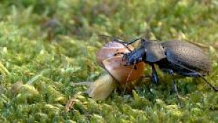 Außerdem ist eine amüsante Begegnung des Lederlaufkäfers mit einer Erdkröte zu sehen.