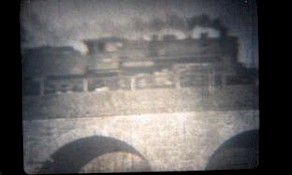 Dampfeisenbahn / Güterzug überquert Brücke,