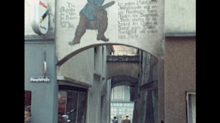 Altstadt, bemalter Torbogen, Haus Wagner, Kind reitet auf Spielfigur,