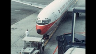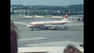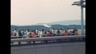 weiteres Flugzeug startet (über Köpfe der Menschen hinweg)