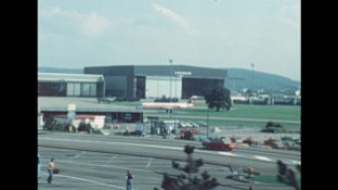Flughafen Zürich, Tower, Terminal, startendes Flugzeug,