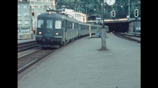 Einfahrt Bahnhof Baden, Menschen am Bahnhof, Ausfahrt,